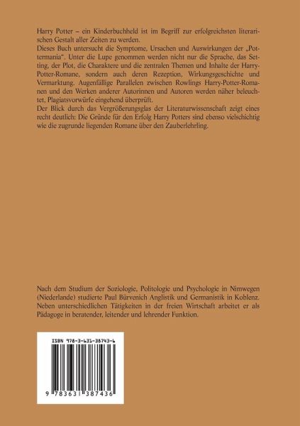 Dieses Buch untersucht die Symptome, Ursachen und Auswirkungen der "Pottermania". Unter die Lupe genommen werden nicht nur die Sprache, das Setting, der Plot, die Charaktere und die zentralen Themen und Inhalte der Harry-Potter-Romane, sondern auch deren Rezeption, Wirkungsgeschichte und Vermarktung. Augenfällige Parallelen zwischen Rowlings Harry-Potter-Romanen und den Werken anderer Autorinnen und Autoren werden näher beleuchtet, Plagiatsvorwürfe eingehend überprüft.
