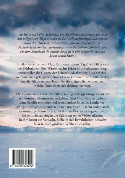 »Es kostet mich bloß Sekunden, um die Flügel auszubreiten und von den vollgepissten Treppenstufen in die Nacht aufzusteigen. Ich schwebe durch den Rauch der Schornsteine, über die Flachdächer der Minenkolonie und das Schienenwirrwarr des Güterbahnhofs hinweg bis zum Brachland. In meiner Brust ist so viel Sehnsucht, dass ich kaum atmen kann.«In Silas` Leben ist kein Platz für diesen Traum. Tagsüber hält er sich mit Diebstählen über Wasser, nachts bricht er in verlassenen Bergwerksstollen die Gesetze der Behörde. Als ihm sein Boss befiehlt, sich um einen gefangenen Nomaden zu kümmern, ahnt Silas weder, dass die Tür zu seinem Traum bereits aufgestoßen wurde, noch welche Dunkelheit sich dahinter verbirgt.Die Vision einer Krähe überfällt den jungen Steppenmagier Raik im schlimmsten Moment seines Lebens. Sein Clan wird vertrieben, seine Familie ermordet und er ans andere Ende des Landes verschleppt. All seine Gedanken kreisen um Flucht. Daran ändert auch der wortkarge Mann nichts, der ihm als Übersetzer zugeteilt wird.Bis er in dessen Augen die Krähe aus seiner Vision erkennt.In ihm keimt ein Verdacht. Sollte er sich bewahrheiten, schwebt Silas in noch größerer Gefahr als er selbst.
