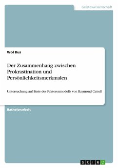 Bachelorarbeit aus dem Jahr 2024 im Fachbereich Psychologie, Note: 1,3, Hochschule Wismar (Wings), Sprache: Deutsch, Abstract: "Untersuchung des Zusammenhangs zwischen der Neigung zur Prokrastination und Persönlichkeitsmerkmalen auf Basis des Faktorenmodells von Raymond Cattell " Interessant geschriebene Bachelorarbeit mit vielen statistischen Hypothesen, auch gut verwenden für Mitarbeitereinstellungen bei den Personalern.