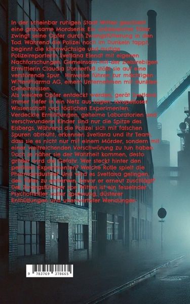 Eine rätselhafte Mordserie vor idyllischer Kleinstadt-Kulisse und ein Wettlauf gegen die Zeit. In Witten versetzt eine grausame Mordserie die Stadt in Angst: Opfer sterben durch perfide Zwangsfütterung. Während die Polizei im Dunkeln tappt, ermittelt die kleinwüchsige Polizeireporterin Svetlana Elendt auf eigene Faust. Gemeinsam mit Ermittlerin Claudia Donnerfuß deckt sie die düsteren Machenschaften der mächtigen WittenPharma AG auf. Verdeckte Labore, verschwundene Kinder und skrupellose Wissenschaftler nichts ist, wie es scheint. Als die Abgründe immer tiefer werden, gerät Svetlana selbst in tödliche Gefahr. Ein packender Psychothriller über Verschwörungen, Gier und das unbändige Streben nach Macht.
