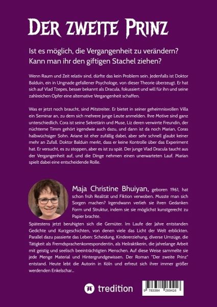 Maja Christine Bhuiyan, geboren 1961, ist eine Autorin, die ihre vielschichtigen Lebenserfahrungen meisterhaft in literarische Schöpfungen umwandelt. Schon früh begann sie, Realität und Fiktion zu einem einzigartigen literarischen Gewebe zu verflechten, was sich durch ihre gesamte Karriere zieht. Ihre Fähigkeit, tiefgründige Gedanken mit einer fast malerischen Qualität zu Papier zu bingen, hat im Laufe der Zeit eine treue Leserschaft gewonnen. Maja Christine Bhuiyan hat eine bemerkenswerte Lebensgeschiche, die ebenso farbenfroh und vielfältig ist wie ihre literarischen Werke. Nach einer bewegten Vergangenheit, die eine Scheidung und die Herausforderungen der Alleinerziehung ihrer Kinder umfasst, fand sie in ihren beruflichen Rollen - als Fremsprachenkorrespondentin und Heilpraktikerin - nicht nur ein Auslkommen, sondern auch eine unerschöpfliche Quelle der Inspiration. Ihre tiefgehenden Erfahrungen mit geistig und seelisch beeinträchtigen Menschen bereicherten ihr Verständnis menschlicher Psyche und Emotionen, was ihr Schreiben mit ungewöhnlicher Empathie und Tiefe füllt. Diese vielfältigen Lebenserfahrungen fließen in ihren Roman "Der Zweite Prinz" ein, in dem sie sich mit Themen wie Zeit, Identität und menschlicher Resilienz auseinandersetzt. Ihr umfangreiches Hintergrundwissen und ihre persönlichen Erfahrungen ermöglichen es ihr, komplexe Charaktere und Situationen mit Authentizität und fachlicher Genauigkeit zu gestalten. Ihre Geschichten sind nicht nur unterhaltsam, sondern regen auch zum Nachdenken an, da sie tiefgreifende Fragen über das Wesen der Realität und die Gestaltung unserer Vergangenheit aufwerfen. Maja Christine Bhuiyan lebt heute in Köln, wo sie von einer wachsenden Zahl von Enkeln umgeben ist. Diese persönliche Freude und ihr kontinuierliches Engagement für das Schreiben machen sie zu einer Stimme, die nicht nur aus Erfahrung spricht, sondern auch eine tiefe Verbindung zu den Themen ihrer Werke hat. Leser, die sich auf der"Der zweite Prinz" einlassen, werden nicht nur in eine fesselnde Erzählung eintauchen, sondern auch die seltene Gelegenheit haben, von einer Autorin zu lernen, deren Leben selbst ein Zeugnis von Wandel und Überlebenskraft ist.