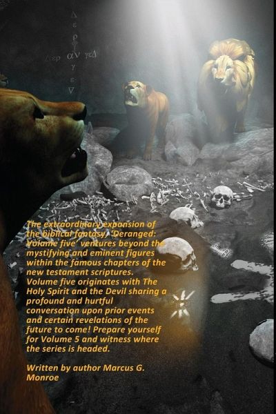 The extraordinary expansion of the biblical fantasy, 'Deranged: Volume five' ventures beyond the mystifying and eminent figures within the famous chapters of the new testament scriptures. Volume five originates with The Holy Spirit and the Devil sharing a profound and hurtful conversation upon prior events and certain revelations of the future to come! Prepare yourself for Volume 5 and witness where the series is headed. Written by author Marcus G. Monroe