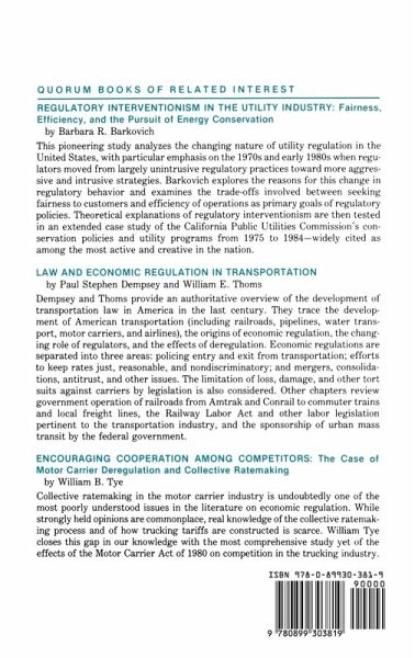 This text focuses on insurance as an industry and speculates what would happen if the insurance industry were to be deregulated. The basics of insurance are incorporated throughout, which allows for a greater understanding of the possible implications of deregulation and trends in competition. . . . What could have been dry and tedious has instead been made pleasant by Banks McDowell, who writes with an easy-to-read and informative style. Examples of small case studies are woven into the text to further illustrate the issues. The material is clear, concise, and thought-provoking and is presented entirely without prejudice. Business Information ALERT The rapid rise in insurance premium costs coupled with the problem of obtaining insurance at any cost for some applicants has precipitated a crisis in the insurance industry. Many scholars and industry analysts have suggested deregulation as a solution, arguing that the actions of a free market are the only efficient means of controlling costs and affordability. McDowell offers an in-depth examination of the arguments in favor of and against deregulation and analyzes what the probable effects of such deregulation would be. Basing his study on the results of past experiments, scholarly recommendations, economic analysis, and his own work in the field, McDowell fully explores the various types of deregulation that could be implemented and assesses the degree to which they would fulfill the goals of maintaining the financial solvency of insurance companies, keeping premiums from being excessive, preventing discrimination among policyholders, and making insurance available and affordable to all who want it. McDowell begins with a discussion of what deregulation means. Subsequent chapters trace the history of insurance regulation, examine the complex goals of governmental insurance regulation, and explore the nature of insurance in contemporary society. Turning to a discussion of competition, McDowell illustrates the various levels at which insurers can compete and examines both the problems of regulation in each area and the likely effects of introducing such competition. The issue of whether regulation of the industry should be at the federal or state level receives thorough treatment, as does the question of using insurance company mergers to increase efficiency and lower costs. McDowell concludes with an enlightening discussion of the series of choices among aims and policies which must be made before the decision to deregulate or not is taken. Insurance company executives and attorneys as well as students of the insurance industry or of insurance law will find McDowell's work a cogent exposition of the complex facets of the insurance deregulation debate.