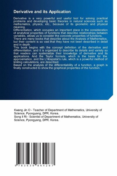 Derivative is a very powerful and useful tool for solving practical problems and developing basic theories in natural sciences such as mathematics, physics, etc., because of its geometric and physical meaning.Differentiation, which occupies an important place in the consideration of analytical properties of functions that describe relationships between variables, allows us to consider the concrete properties of functions.There are many books that describe about the Analysis of Mathematics, but their content is so vast that they have not been described in detail and in depth.This book begins with the concept definition of the derivative and differentiation, and it is organized to describe its details and variety so that readers can systematize their knowledge of derivative and its applications. And the Taylor formula, which is the basis for the approximation, and the L'Hospistal's rule, which is a powerful method of limiting calculations, are described.Based on the analysis of thedifferentiability of a function, a graph is finally constructed to show the graphical properties of the function.
