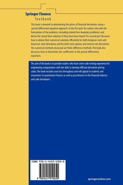 "This book is mainly devoted to finite difference numerical methods for solving partial differential equations (PDEs) models of pricing a wide variety of financial derivative securities... the book is highly well designed and structured as a textbook for graduate students following a mathematical finance program, which includes Black-Scholes dynamic hedging methodology to price financial derivatives. Also, it is a very valuable reference for those researchers working in numerical methods in financial derivatives, either with a more financial or mathematical background." -- MATHEMATICAL REVIEWS