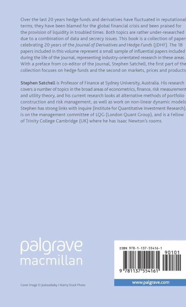 Over the last 20 years hedge funds and derivatives have fluctuated in reputational terms; they have been blamed for the global financial crisis and been praised for the provision of liquidity in troubled times. Both topics are rather under-researched due to a combination of data and secrecy issues. This book is a collection of papers celebrating 20 years of the Journal of Derivatives and Hedge Funds (JDHF). The 18 papers included in this volume represent a small sample of influential papers included during the life of the Journal, representing industry-orientated research in these areas. With a Preface from co-editor of the journal Stephen Satchell, the first part of the collection focuses on hedge funds and the second on markets, prices and products.