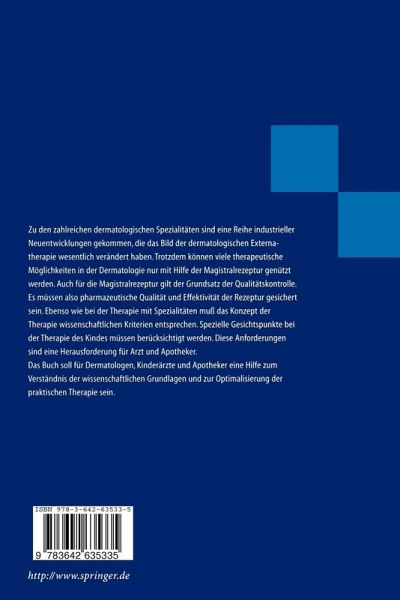Die klassische Magistralrezeptur hat eine lange Tradition und stützt sich vorwiegend auf Empirie. In der Praxis sind nahezu 50% der durch Dermatologen verordneten Externa Magistralrezepturen. Es ist unumgänglich, daß die Magistralrezeptur dem gegenwärtigen Stand des wissenschaftlichen Fortschrittes angepaßt wird. Obsolete Wirkstoffe müssen vermieden werden. Die Galenik soll optimalisiert werden. Ähnlich wie bei Spezialitäten soll sich der verordnende Arzt darauf verlassen können, daß bei empfohlenen Magistralrezepturen die pharmakologische Wirkung des Wirkstoffes in der Grundlage gesichert oder zumindest sehr wahrscheinlich ist. Externagrundlagen für bestimmte Indikationen sollen gezielt unter wissenschaftlichen Gesichtspunkten zusammengestellt werden. Hauptanliegen des Buches sind gezielte therapeutische Empfehlungen unter diesen Gesichtspunkten.