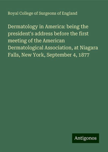 Dermatology in America: being the president's address before the first meeting of the American Dermatological Association, at Niagara Falls, New York, September 4, 1877 - England, Royal College Of Surgeons Of
