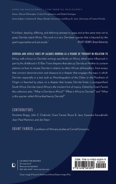 Taking up Jacques Derrida as a figure of thought in relation to Africa, this edited collection poses the questions: What is Derrida to Africa? And, its corollary, what is Africa to Derrida?