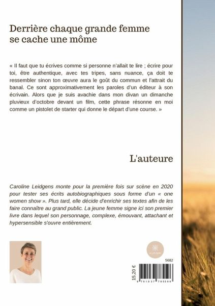 « Il faut que tu écrives comme si personne n¿allait te lire ; écrire pour toi, être authentique, avec tes tripes, sans nuance, ça doit te ressembler sinon ton ¿uvre aura le goût du commun et l¿attrait du banal. Ce sont approximativement les paroles d¿un éditeur à son écrivain. Alors que je suis avachie dans mon divan un dimanche pluvieux d¿octobre devant un film, cette phrase résonne en moi comme un pistolet de starter qui donne le départ d¿une course. »
