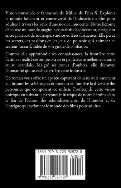 Vision romancée et fantasmée du Milieu du Film X. Explorez le monde fascinant et controversé de l'industrie du film pour adultes à travers les yeux d'une novice innocente. Notre héroïne découvre un monde magique et parfois déconcertant, naviguant entre plateaux de tournage, studios et fêtes fastueuses. Elle perce les secrets, les passions et les jeux de pouvoir qui animent ce secteur lucratif, aidée de son guide de confiance. Comme elle approfondit ses connaissances, la frontière entre fiction et réalité s'estompe. Strass et paillettes se mêlent au drame et au scandale. Malgré ses zones d'ombres, elle découvre l'humanité qui se cache derrière cette industrie. Ce roman vous offre un aperçu captivant d'un univers rarement vu, brisant les stéréotypes et mettant en lumière la diversité des personnes qui composent ce milieu. Profitez de cette vision onirique en suivant le parcours initiatique de notre héroïne dans le feu de l'action, des rebondissements, de l'humour et de l'intrigue qui rythment le monde des films pour adultes.