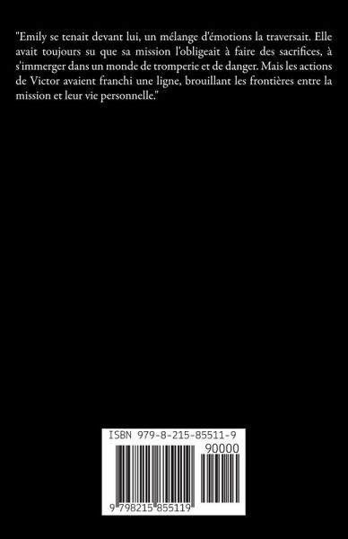 "Emily se tenait devant lui, un mélange d'émotions la traversait. Elle avait toujours su que sa mission l'obligeait à faire des sacrifices, à s'immerger dans un monde de tromperie et de danger. Mais les actions de Victor avaient franchi une ligne, brouillant les frontières entre la mission et leur vie personnelle."