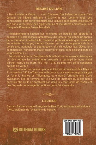 The idea and wish to write this book was triggered by the centennial commemoration of World War I end, on November 11, 2018. In the family archives I had come across a set of documents, mainly notebooks, workbooks, textbooks belonging to Uncle Henri when he was a cadet at the preparatory Military academy, as well letters he had written from the front between 1915 and 1916, year of his death at the Battle of Verdun. After reading these deeply moving posthumous testimonies of this young hero for whom love and devotion to his country was the primary passion, I felt that his story, similar to the story of so many others of his fellow combatants, had to be told, could not be allowed to sink into oblivion, into the "black death of oblivion". It was not easy task, because I possessed only sparse, incomplete, disparate documents and had to reconstruct the story in its chronological order by cross-checking, juxtaposing texts. In this endeavor I was fortunate enough to come across the history of the 68th Infantry Regiment where Henri was incorporated and which retraces all the daily actions of this unit. This modest book, among many others much more important and scholarly, tries only to pay homage, the more so for personal reasons, to these heroic soldiers who fought in hellish conditions and made the ultimate sacrifice for a cause which they believed worthy of their sacrifice: freedom.