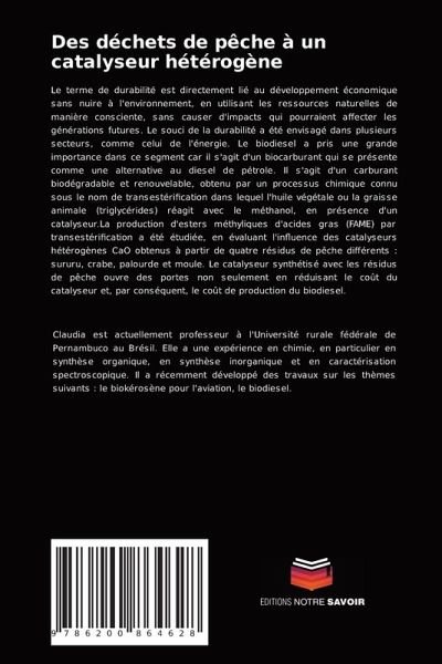 Le terme de durabilité est directement lié au développement économique sans nuire à l'environnement, en utilisant les ressources naturelles de manière consciente, sans causer d'impacts qui pourraient affecter les générations futures. Le souci de la durabilité a été envisagé dans plusieurs secteurs, comme celui de l'énergie. Le biodiesel a pris une grande importance dans ce segment car il s'agit d'un biocarburant qui se présente comme une alternative au diesel de pétrole. Il s'agit d'un carburant biodégradable et renouvelable, obtenu par un processus chimique connu sous le nom de transestérification dans lequel l'huile végétale ou la graisse animale (triglycérides) réagit avec le méthanol, en présence d'un catalyseur.La production d'esters méthyliques d'acides gras (FAME) par transestérification a été étudiée, en évaluant l'influence des catalyseurs hétérogènes CaO obtenus à partir de quatre résidus de pêche différents : sururu, crabe, palourde et moule. Le catalyseur synthétisé avec les résidus de pêche ouvre des portes non seulement en réduisant le coût du catalyseur et, par conséquent, le coût de production du biodiesel.