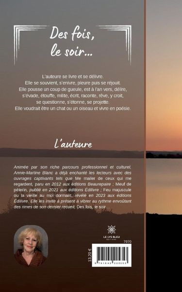 L¿auteure se livre et se délivre. Elle se souvient, s¿enivre, pleure puis se réjouit. Elle pousse un coup de gueule, est à l¿an vers, délire, s¿évade, étouffe, milite, écrit, raconte, rêve, y croit, se questionne, s¿étonne, se projette. Elle voudrait être un chat ou un oiseau et vivre en poésie.