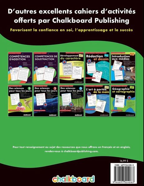 Des Mathematiques Pour Tous Les Jours 1: Reinforce essential math concepts and skills with consistent and focused practice! This resource features 30 weeks of activities where each day of the week (Monday to Friday) focuses on a specific math strand featuring: Number Sense Patterning and Algebra Measurement Geometry and Spatial Sense Data Management and Probability Brain Stretch This versatile resource is the ideal supplement to enhance or enrich any math curriculum. Use these activities as individual bell work, as a whole class or as assigned homework. It also includes a student tracking sheet as well as teaching tips. To easily differentiate instruction, the student pages for the other grades in this series are intentionally organized in the same way and look similar.