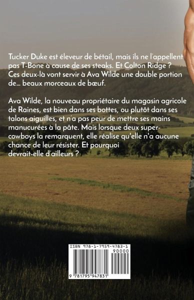 Tucker Duke est éleveur de bétail, mais ils ne l’appellent pas T-Bone à cause de ses steaks. Et Colton Ridge ? Ces deux-là vont servir à Ava Wilde une double portion de… beaux morceaux de bœuf. Ava Wilde, la nouveau propriétaire du magasin agricole de Raines, est bien dans ses bottes, ou plutôt dans ses talons aiguilles, et n’a pas peur de mettre ses mains manucurées à la pâte. Mais lorsque deux super-cowboys la remarquent, elle réalise qu'elle n'a aucune chance de leur résister. Et pourquoi devrait-elle d’ailleurs ? Souvenez-vous : Un cowboy ne suffit jamais dans les livres de Vanessa Vale. Dans cette série de livres très chauds, chaque héroïne a le droit à une part supplémentaire (ou deux) de Mâles inoubliables.
