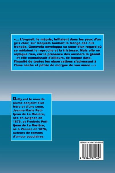 ... L'orgueil, le mépris, brillaient dans les yeux d'un gris clair, sur lesquels tombait la frange des cils froncés. Genovefa enveloppa sa s¿ur d'un regard où se mêlaient le reproche et la tristesse. Mais elle ne répliqua rien, car la présence des ouvriers la gênait - et elle connaissait d'ailleurs, de longue date, l'inanité de toutes les observations s'adressant à l'âme sèche et pétrie de morgue de son aînée ...