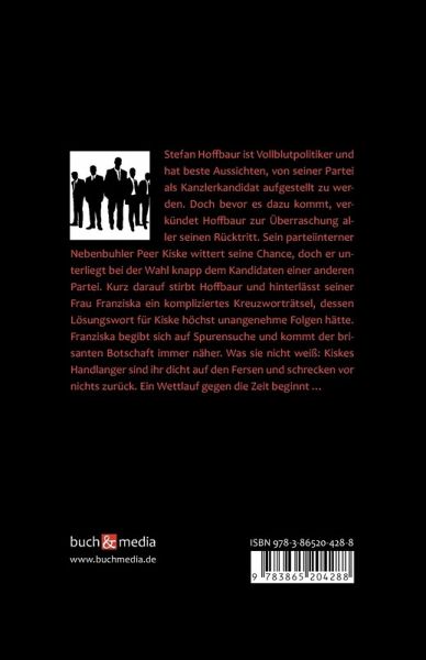 Stefan Hoffbaur ist Vollblutpolitiker und hat beste Aussichten, von seiner Partei als Kanzlerkandidat aufgestellt zu werden. Doch bevor es dazu kommt, verkündet Hoffbaur zur Überraschung aller seinen Rücktritt. Sein parteiinterner Nebenbuhler Peer Kiske wittert seine Chance, doch er unterliegt bei der Wahl knapp dem Kandidaten einer anderen Partei. Kurz darauf stirbt Hoffbaur und hinterlässt seiner Frau Franziska ein kompliziertes Kreuzworträtsel, dessen Lösungswort für Kiske höchst unangenehme Folgen hätte. Franziska begibt sich auf Spurensuche und kommt der brisanten Botschaft immer näher. Was sie nicht weiß: Kiskes Handlanger sind ihr dicht auf den Fersen und schrecken vor nichts zurück. Ein Wettlauf gegen die Zeit beginnt.