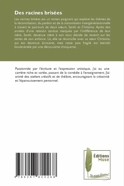 Les racines brisées est un roman poignant qui explore les thèmes de la réconciliation, du pardon et de la transmission intergénérationnelle à travers le parcours de deux soeurs, Sarah et Christina. Après des années d'une relation tendue marquée par l'indifférence de leur mère, Sarah, devenue mère à son tour, décide de revenir sur les terres de son enfance. Là, elle se réconcilie avec sa soeur Christina, qui est devenue écrivaine, mais cette paix fragile est bientôt bouleversée par une découverte choquante.