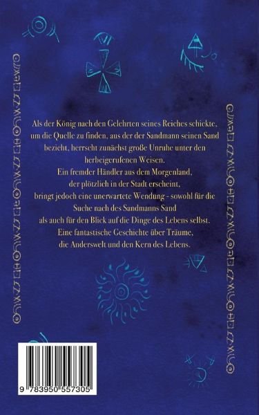 Als der König nach den Gelehrten seines Reiches schickte, um die Quelle zu finden, aus der der Sandmann seinen Sand bezieht, herrscht zunächst große Unruhe unter den herbeigerufenen Weisen. Ein fremder Händler aus dem Morgenland, der plötzlich in der Stadt erscheint, bringt jedoch eine unerwartete Wendung - sowohl für die Suche nach des Sandmanns Sand als auch für den Blick auf die Dinge des Lebens selbst. Eine fantastische Geschichte über Träume, die Anderswelt und den Kern des Lebens.