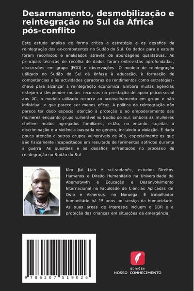 Este estudo analisa de forma crítica a estratégia e os desafios da reintegração dos ex-combatentes no Sudão do Sul. Os dados para o estudo foram recolhidos e analisados através de abordagens qualitativas. As principais técnicas de recolha de dados foram entrevistas aprofundadas, discussões em grupo (FGD) e observações. O modelo de reintegração utilizado no Sudão do Sul dá ênfase à educação, à formação de competências e às actividades geradoras de rendimentos como estratégias-chave para alcançar a reintegração económica. Embora muitas agências estejam a despender muitos recursos na prestação de apoio psicossocial aos XC, o modelo utilizado recorre ao aconselhamento em grupo e não individual, o que parece ser menos eficaz. A política de reintegração não parece ter dado especial atenção à proteção e ao empoderamento das mulheres enquanto grupo vulnerável no Sudão do Sul. Embora as mulheres chefiem muitos agregados familiares, estão, no entanto, sujeitas a discriminação e a violência baseada no género, incluindo a violação. É dada pouca atenção a outros grupos vulneráveis de XCs, especialmente os que são fisicamente incapacitados em resultado de ferimentos sofridos durante a guerra. As questões e os desafios enfrentados no processo de reintegração no Sudão do Sul