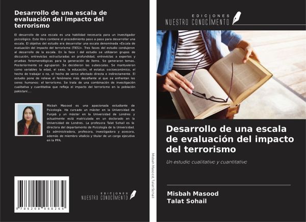 El desarrollo de una escala es una habilidad necesaria para un investigador psicológico. Este libro contiene el procedimiento paso a paso para desarrollar una escala. El objetivo del estudio era desarrollar una escala denominada 'Escala de evaluación del impacto del terrorismo (TIES)'. Tres fases del estudio condujeron al desarrollo de la escala. En la fase I del estudio se utilizaron grupos de discusión, entrevistas estructuradas en profundidad, entrevistas a expertos y pruebas fenomenológicas para la generación de ítems. Se generaron temas. Posteriormente se agruparon. Se decidieron las subescalas. Se mantuvieron como variables la edad, el sexo, la educación, el estatus socioeconómico, el hecho de trabajar o no, el hecho de verse afectado directa o indirectamente. El estudio pone de relieve el fenómeno más desafiante al que se enfrentan los seres humanos: el terrorismo. Se trata de una combinación de investigación cualitativa y cuantitativa que refleja el impacto del terrorismo en la población pakistaní....
