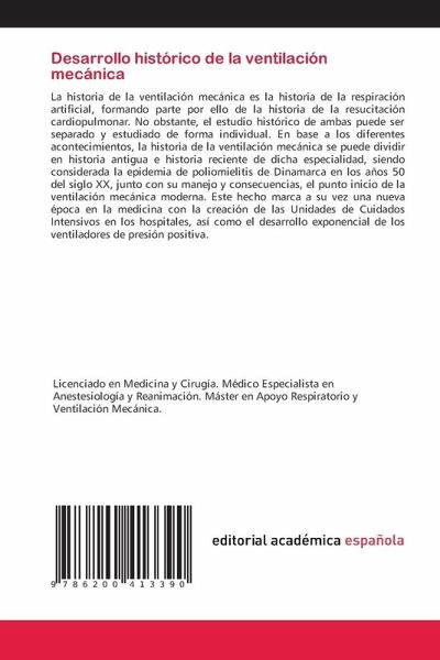 La historia de la ventilación mecánica es la historia de la respiración artificial, formando parte por ello de la historia de la resucitación cardiopulmonar. No obstante, el estudio histórico de ambas puede ser separado y estudiado de forma individual. En base a los diferentes acontecimientos, la historia de la ventilación mecánica se puede dividir en historia antigua e historia reciente de dicha especialidad, siendo considerada la epidemia de poliomielitis de Dinamarca en los años 50 del siglo XX, junto con su manejo y consecuencias, el punto inicio de la ventilación mecánica moderna. Este hecho marca a su vez una nueva época en la medicina con la creación de las Unidades de Cuidados Intensivos en los hospitales, así como el desarrollo exponencial de los ventiladores de presión positiva.