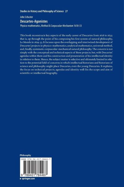This book reconstructs key aspects of the early career of Descartes from 1618 to 1633; that is, up through the point of his composing his first system of natural philosophy, Le Monde, in 1629-33. It focuses upon the overlapping and intertwined development of Descartes' projects in physico-mathematics, analytical mathematics, universal method, and, finally, systematic corpuscular-mechanical natural philosophy. The concern is not simply with the conceptual and technical aspects of these projects; but, with Descartes' agendas within them and his construction and presentation of his intellectual identity in relation to them.