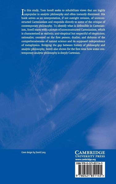 Thomas Sorell seeks to rehabilitate views that are highly unpopular in analytic philosophy and often instantly dismissed. His book serves as an interpretation, if not outright revision, of unreconstructed Cartesianism and responds directly to the critique of contemporary philosophy. To identify what is defensible in Cartesianism, Sorell starts with a picture of unreconstructed Cartesianism which is characterized as realistic. Bridging the gap between history of philosophy and analytic philosophy, Sorell also demonstrates how some contemporary analytic philosophy is deeply Cartesian.