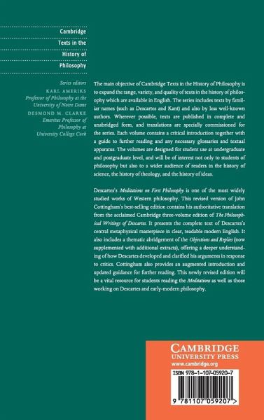 This volume is a refreshed and updated edition of John Cottingham's acclaimed 1996 translation, including an updated introduction, a substantially revised bibliography and specially selected extracts from the Objections and Replies. It will be a vital resource for students reading the Meditations, as well as those studying Descartes and early modern philosophy.