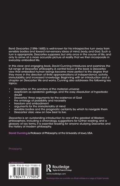 'Cunning's Descartes is at once accessible, scholarly, and offers important insights into underappreciated aspects of Descartes' thought. This exceptional book upends the traditional interpretation of Descartes as a deeply committed "rationalist" philosopher by offering a reinterpretation of Descartes' philosophical work grounded in his very human commitments to living well in light of his philosophical principles. Essential reading for anyone interested in Descartes.' - Kristopher G. Phillips, Southern Utah University, USA