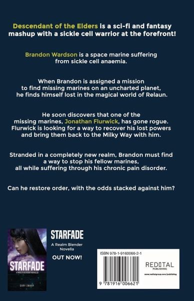 Can Brandon Wardson overcome sickle cell anemia to save the future of two realms? As a sickle cell sufferer living on Earth, Brandon never felt like he fit in. Living in a body plagued with chronic pains and being in a constant state of fatigue, alienated him from his peers that just couldn’t understand his plight. That’s why he always dreamed of leaving Earth and exploring the Milky Way. Joining the Alliance space marine program was the cheapest ticket off of the planet. After exhausting his efforts to become the best space marine he could be, Brandon was made Sergeant at the young age of 20. But his superiors still see him as a liability because of his physical limitations. When Brandon is assigned on a mission to locate missing Alliance marines, he soon finds himself lost in the magical world of Relaun, where he bumps into a superior marine named, Jonathan Flurwick. Flurwick has gone rogue and is seeking a way to uncover his lost magical powers and return to the Milky Way to overthrow the Galactic Alliance. Brandon must endure the pain and gather enough support to thwart Flurwick’s wicked scheme, all while adjusting to a new realm full of magic that he never knew existed. Descendant of the Elders is a sci-fi and fantasy mashup with a sickle cell warrior at the forefront!
