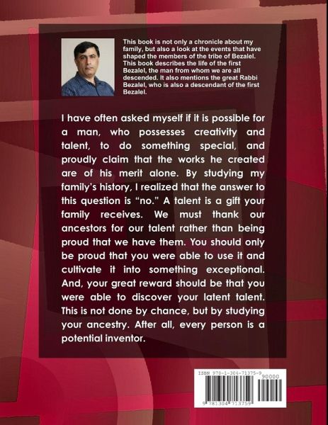 This book is not only a chronicle about my family, but also a look at the events that have shaped the members of the tribe of Bezalel. This book describes the life of the first Bezalel, the man from whom we are all descended. It also mentions the great Rabbi Bezalel, who is also a descendant of the first Bezalel.