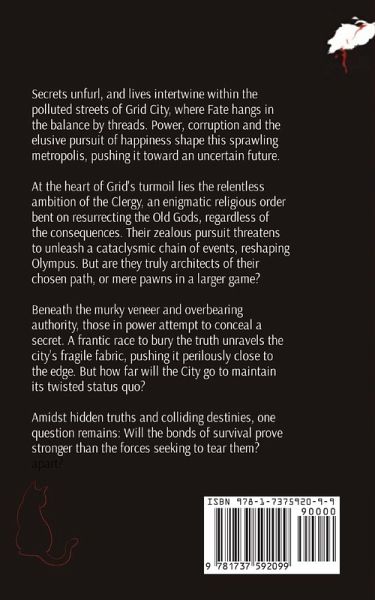 Secrets unfurl, and lives intertwine within the polluted streets of Grid City, where Fate hangs in the balance by threads. Power, corruption, and the elusive pursuit of happiness shape this sprawling metropolis, pushing it toward an uncertain future. At the heart of Grid's turmoil lies the relentless ambition of the Clergy, an enigmatic religious order bent on resurrecting the Old Gods, regardless of the consequences. Their zealous pursuit threatens to unleash a cataclysmic chain of events, reshaping the realm. But are they truly architects of their chosen path, or mere pawns in a larger game? Beneath the murky veneer and overbearing authority, those in power attempt to conceal a secret. A frantic race to bury the truth unravels the city's fragile fabric, pushing it perilously close to the edge. But how far will the City go to maintain its twisted status quo? Amidst hidden truths and colliding destinies, one question remains: Will the bonds of survival prove stronger than the forces seeking to tear them apart?