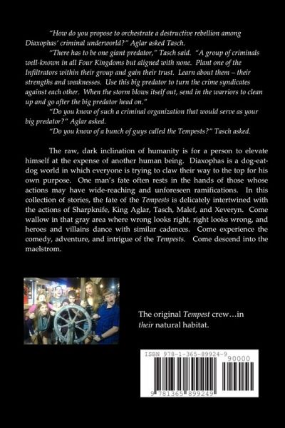 The raw, dark inclination of humanity is for a person to elevate himself at the expense of another human being. Diaxophas is a dog-eat-dog world in which everyone is trying to claw their way to the top for his own purpose. One man's fate often rests in the hands of those whose actions may have wide-reaching and unforeseen ramifications. In this collection of stories, the fate of the Tempests is delicately intertwined with the actions of Sharpknife, King Aglar, Tasch, Malef, and Xeveryn. Come wallow in that gray area where wrong looks right, right looks wrong, and heroes and villains dance with similar cadences. Come experience the comedy, adventure, and intrigue of the Tempests. Come descend into the maelstrom.