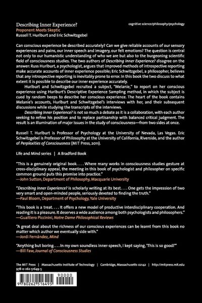 A psychologist and a philosopher with opposing viewpoints discuss the extent to which it is possible to report accurately on our own conscious experience, considering both the reliability of introspection in general and the particular self-reported inner experiences of "Melanie," a subject interviewed using the Descriptive Experience Sampling method. Can conscious experience be described accurately? Can we give reliable accounts of our sensory experiences and pains, our inner speech and imagery, our felt emotions? The question is central not only to our humanistic understanding of who we are but also to the burgeoning scientific field of consciousness studies. The two authors of Describing Inner Experience disagree on the answer: Russell Hurlburt, a psychologist, argues that improved methods of introspective reporting make accurate accounts of inner experience possible; Eric Schwitzgebel, a philosopher, believes that any introspective reporting is inevitably prone to error. In this book the two discuss to what extent it is possible to describe our inner experience accurately. Hurlburt and Schwitzgebel recruited a subject, "Melanie," to report on her conscious experience using Hurlburt's Descriptive Experience Sampling method (in which the subject is cued by random beeps to describe her conscious experience). The heart of the book is Melanie's accounts, Hurlburt and Schwitzgebel's interviews with her, and their subsequent discussions while studying the transcripts of the interviews. In this way the authors' dispute about the general reliability of introspective reporting is steadily tempered by specific debates about the extent to which Melanie's particular reports are believable. Transcripts and audio files of the interviews will be available on the MIT Press website. Describing Inner Experience? is not so much a debate as it is a collaboration, with each author seeking to refine his position and to replace partisanship with balanced critical judgment. The result is an illumination of major issues in the study of consciousness—from two sides at once.