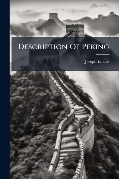 "Description Of Peking" offers a detailed glimpse into the capital of China during the 19th century. Written by Joseph Edkins, this work provides a comprehensive overview of the city's layout, architecture, social customs, and daily life. Edkins' account serves as a valuable historical document, capturing the essence of Peking before modernization significantly altered its character. Readers will discover rich descriptions of Peking's streets, temples, palaces, and the residences of its inhabitants. The book explores the city's cultural landscape, shedding light on the traditions, beliefs, and social structures that defined Peking society. "Description Of Peking" is a fascinating read for anyone interested in the history of China, urban studies, or travel literature, providing insights into a world that has since transformed. This work has been selected by scholars as being culturally important, and is part of the knowledge base of civilization as we know it. This work was reproduced from the original artifact, and remains as true to the original work as possible. Therefore, you will see the original copyright references, library stamps (as most of these works have been housed in our most important libraries around the world), and other notations in the work. This work is in the public domain in the United States of America, and possibly other nations. Within the United States, you may freely copy and distribute this work, as no entity (individual or corporate) has a copyright on the body of the work. As a reproduction of a historical artifact, this work may contain missing or blurred pages, poor pictures, errant marks, etc. Scholars believe, and we concur, that this work is important enough to be preserved, reproduced, and made generally available to the public. We appreciate your support of the preservation process, and thank you for being an important part of keeping this knowledge alive and relevant.