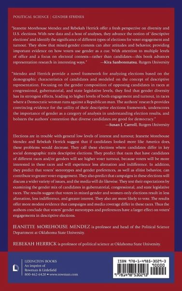This book presents a theory of descriptive elections that posits mixed-gender elections see higher voter turnout and voter engagement (lower alienation, indifference, and higher interest) as well as greater discussion of campaign issues.