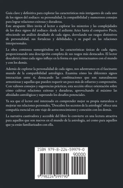 Guía clave y definitiva para explorar las características más intrigantes de cada uno de los signos del zodiaco: su personalidad, la compatibilidad y numerosos consejos para lograr relaciones exitosas y duraderas. Este atrapante libro invita al lector a explorar los misterios y las complejidades de los doce signos del zodiaco: desde el ardiente Aries hasta el compasivo Piscis, ofreciendo un análisis detallado de cada signo, desvelando sus rasgos distintivos de personalidad, sus fortalezas y debilidades, y su papel en las relaciones interpersonales. La obra comienza sumergiéndose en las características únicas de cada signo, proporcionando una descripción completa de sus rasgos más destacados. El lector descubrirá cómo cada signo influye en la forma en que interactuamos con el mundo y con los demás. Además de explorar la personalidad de cada signo, nos adentramos en el fascinante mundo de la compatibilidad astrológica. Examina cómo los diferentes signos interactúan entre sí, destacando las combinaciones que son naturalmente armoniosas y aquellas que pueden requerir un poco más de esfuerzo y comprensión. Con valiosos consejos y sugerencias prácticas, esta sección ofrece orientación sobre cómo cultivar relaciones exitosas y duraderas, aprovechando al máximo las afinidades astrológicas y superando los desafíos potenciales. Ya sea que el lector esté interesado en comprender mejor su propia naturaleza o mejorar sus relaciones personales, "Descubre los secretos de la astrología" ofrece una compañía esencial en este viaje de autoconocimiento y conexión con los demás. La narrativa cautivadora y accesible del libro lo convierte en una lectura atractiva para aquellos que son nuevos en el mundo de la astrología, así como para aquellos que ya están familiarizados con ella.