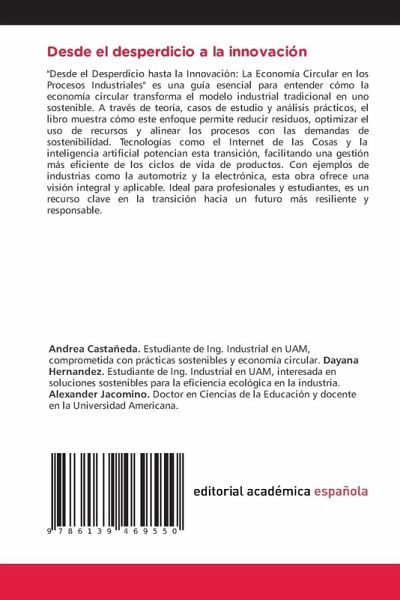 "Desde el Desperdicio hasta la Innovación: La Economía Circular en los Procesos Industriales" es una guía esencial para entender cómo la economía circular transforma el modelo industrial tradicional en uno sostenible. A través de teoría, casos de estudio y análisis prácticos, el libro muestra cómo este enfoque permite reducir residuos, optimizar el uso de recursos y alinear los procesos con las demandas de sostenibilidad. Tecnologías como el Internet de las Cosas y la inteligencia artificial potencian esta transición, facilitando una gestión más eficiente de los ciclos de vida de productos. Con ejemplos de industrias como la automotriz y la electrónica, esta obra ofrece una visión integral y aplicable. Ideal para profesionales y estudiantes, es un recurso clave en la transición hacia un futuro más resiliente y responsable.