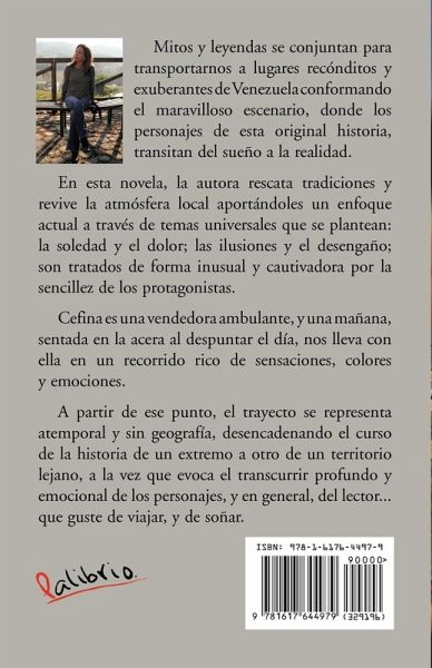 Mitos y leyendas se conjuntan para transportarnos a lugares recónditos y exuberantes de Venezuela conformando el maravilloso escenario, donde los personajes de esta original historia, transitan del sueño a la realidad. En esta novela, la autora rescata tradiciones y revive la atmósfera local aportándoles un enfoque actual a través de temas universales que se plantean: la soledad y el dolor; las ilusiones y el desengaño; son tratados de forma inusual y cautivadora por la sencillez de los protagonistas. Cefina es una vendedora ambulante, y una mañana, sentada en la acera al despuntar el día, nos lleva con ella en un recorrido rico de sensaciones, colores y emociones. A partir de ese punto, el trayecto se representa atemporal y sin geografía, desencadenando el curso de la historia de un extremo a otro de un territorio lejano, a la vez que evoca el transcurrir profundo y emocional de los personajes, y en general, del lector...que guste de viajar, y de soñar.