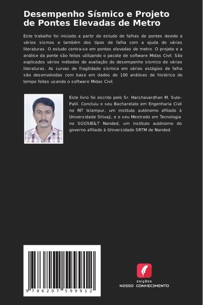 Este trabalho foi iniciado a partir do estudo de falhas de pontes devido a vários sismos e também dos tipos de falha com a ajuda de várias literaturas. O estudo centra-se em pontes elevadas de metro. O projeto e a análise da ponte são feitos utilizando o pacote de software Midas Civil. São explicados vários métodos de avaliação do desempenho sísmico de várias literaturas. As curvas de fragilidade sísmica em vários estágios de falha são desenvolvidas com base em dados de 100 análises de histórico de tempo feitas usando o software Midas Civil.