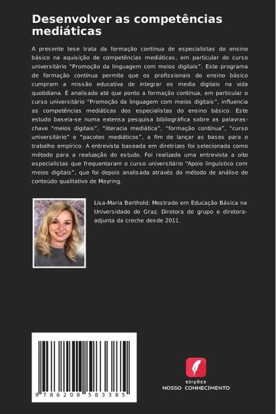 A presente tese trata da formação contínua de especialistas do ensino básico na aquisição de competências mediáticas, em particular do curso universitário "Promoção da linguagem com meios digitais". Este programa de formação contínua permite que os profissionais do ensino básico cumpram a missão educativa de integrar os media digitais na vida quotidiana. É analisado até que ponto a formação contínua, em particular o curso universitário "Promoção da linguagem com meios digitais", influencia as competências mediáticas dos especialistas do ensino básico. Este estudo baseia-se numa extensa pesquisa bibliográfica sobre as palavras-chave "meios digitais", "literacia mediática", "formação contínua", "curso universitário" e "pacotes mediáticos", a fim de lançar as bases para o trabalho empírico. A entrevista baseada em diretrizes foi selecionada como método para a realização do estudo. Foi realizada uma entrevista a oito especialistas que frequentaram o curso universitário "Apoio linguístico com meios digitais", que foi depois analisada através do método de análise de conteúdo qualitativo de Mayring.