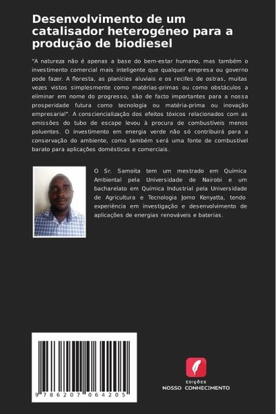 "A natureza não é apenas a base do bem-estar humano, mas também o investimento comercial mais inteligente que qualquer empresa ou governo pode fazer. A floresta, as planícies aluviais e os recifes de ostras, muitas vezes vistos simplesmente como matérias-primas ou como obstáculos a eliminar em nome do progresso, são de facto importantes para a nossa prosperidade futura como tecnologia ou matéria-prima ou inovação empresarial". A consciencialização dos efeitos tóxicos relacionados com as emissões do tubo de escape levou à procura de combustíveis menos poluentes. O investimento em energia verde não só contribuirá para a conservação do ambiente, como também será uma fonte de combustível barato para aplicações domésticas e comerciais.