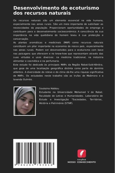 Os recursos naturais são um elemento essencial na vida humana, especialmente nas zonas rurais. São um meio importante de satisfazer as necessidades da população. Proporcionam oportunidades de emprego e contribuem para o desenvolvimento socioeconómico. A consciência da sua importância na vida quotidiana do homem levou à sua protecção e conservação.As plantas aromáticas e medicinais (MAP) como recursos naturais constituem um pilar importante na economia do nosso país, especialmente nas zonas rurais. Podem ser desenvolvidos para o ecoturismo com base nas paisagens que oferecem e no know-how que representam através das suas virtudes e usos diversos: na medicina tradicional, na indústria alimentar e cosmética e na perfumaria.Este estudo foi dedicado às principais MAPs da Região Rabat-Salé-Kénitra, que goza de uma localização geográfica distinta como parte do domínio atlântico. A diversidade do relevo e do clima dá-lhe uma riqueza significativa de MAPs. Os estudados neste trabalho são as trufas de Maâmora e a lavanda Oulmès.