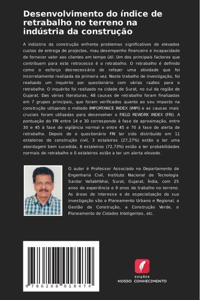 A indústria da construção enfrenta problemas significativos de elevados custos de entrega de projectos, mau desempenho financeiro e incapacidade de fornecer valor aos clientes em tempo útil. Um dos principais factores que contribuem para este retrocesso é o retrabalho. O retrabalho é definido como o esforço desnecessário de refazer uma atividade que foi incorretamente realizada da primeira vez. Neste trabalho de investigação, foi realizado um inquérito por questionário com várias razões para o retrabalho. O inquérito foi realizado na cidade de Surat, no sul da região de Gujarat. Das várias literaturas, 48 causas de retrabalho foram finalizadas em 7 grupos principais, que foram verificados quanto ao seu impacto na construção utilizando o método IMPORTANCE INDEX (IMPI) e as causas mais cruciais foram utilizadas para desenvolver o FIELD REWORK INDEX (FRI). A pontuação do FRI entre 14 e 30 corresponde à fase de aproximação, entre 30 e 45 à fase de vigilância normal e entre 45 e 70 à fase de alerta de retrabalho. Depois de o questionário FRI ter sido distribuído em 11 estaleiros de construção civil, 3 estaleiros (27,27%) estão a ter uma abordagem bem sucedida, 8 estaleiros (72,73%) estão a ter probabilidades normais de retrabalho e 0 estaleiros estão a ter um alerta elevado.