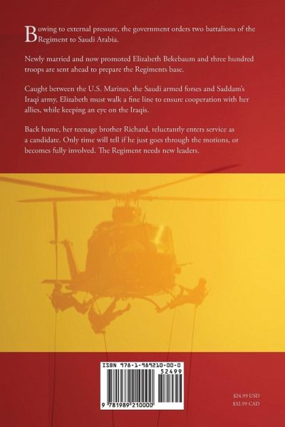 Bowing to external pressure, the government orders two battalions of the Regiment to Saudi Arabia. Newly married and now promoted Elizabeth Bekebaum and three hundred troops are sent ahead to prepare the Regiments base. Caught between the U.S. Marines, the Saudi armed forses and Saddam's Iraqi army, Elizabeth must walk a fine line to ensure cooperation with her allies, while keeping an eye on the Iraqis. Back home, her teenage brother Richard, reluctantly enters service as a candidate. Only time will tell if he just goes through the motions, or becomes fully involved. The Regiment needs new leaders.
