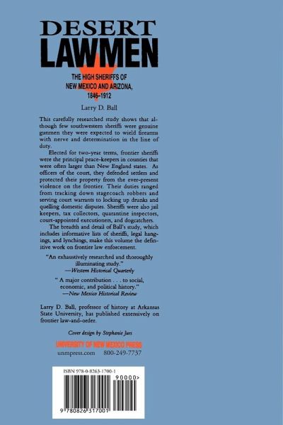 This carefully researched study shows that although few southwestern sheriffs were genuine gunmen they were expected to wield firearms with nerve and determination in the line of duty. Elected for two-year terms, frontier sheriffs were the principal peace-keepers in counties that were often larger than New England states. As officers of the court, they defended settlers and protected their property from the ever- present violence of the frontier. Their duties ranged from tracking down stagecoach robbers and serving court warrants to locking up drunks and quelling domestic disputes. Sheriffs were also jail keepers, tax collectors, quarantine inspectors, court-appointed executioners, and dogcatchers. The breadth and detail of Ball's study, which includes informative lists of sheriffs, legal hangings, and lynchings, makes this volume the definitive work on frontier law enforcement.