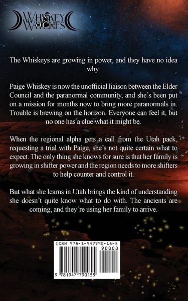 The Whiskeys are growing in power, and they have no idea why. Paige Whiskey is now the unofficial liaison between the Elder Council and the paranormal community, and she's been put on a mission for months now to bring more paranormals in. Trouble is brewing on the horizon. Everyone can feel it, but no one has a clue what it might be. When the regional alpha gets a call from the Utah pack, requesting a trial with Paige, she's not quite certain what to expect. The only thing she knows for sure is that her family is growing in shifter power and the region needs to more shifters to help counter and control it. But what she learns in Utah brings the kind of understanding she doesn't quite know what to do with. The ancients are coming, and they're using her family to arrive.